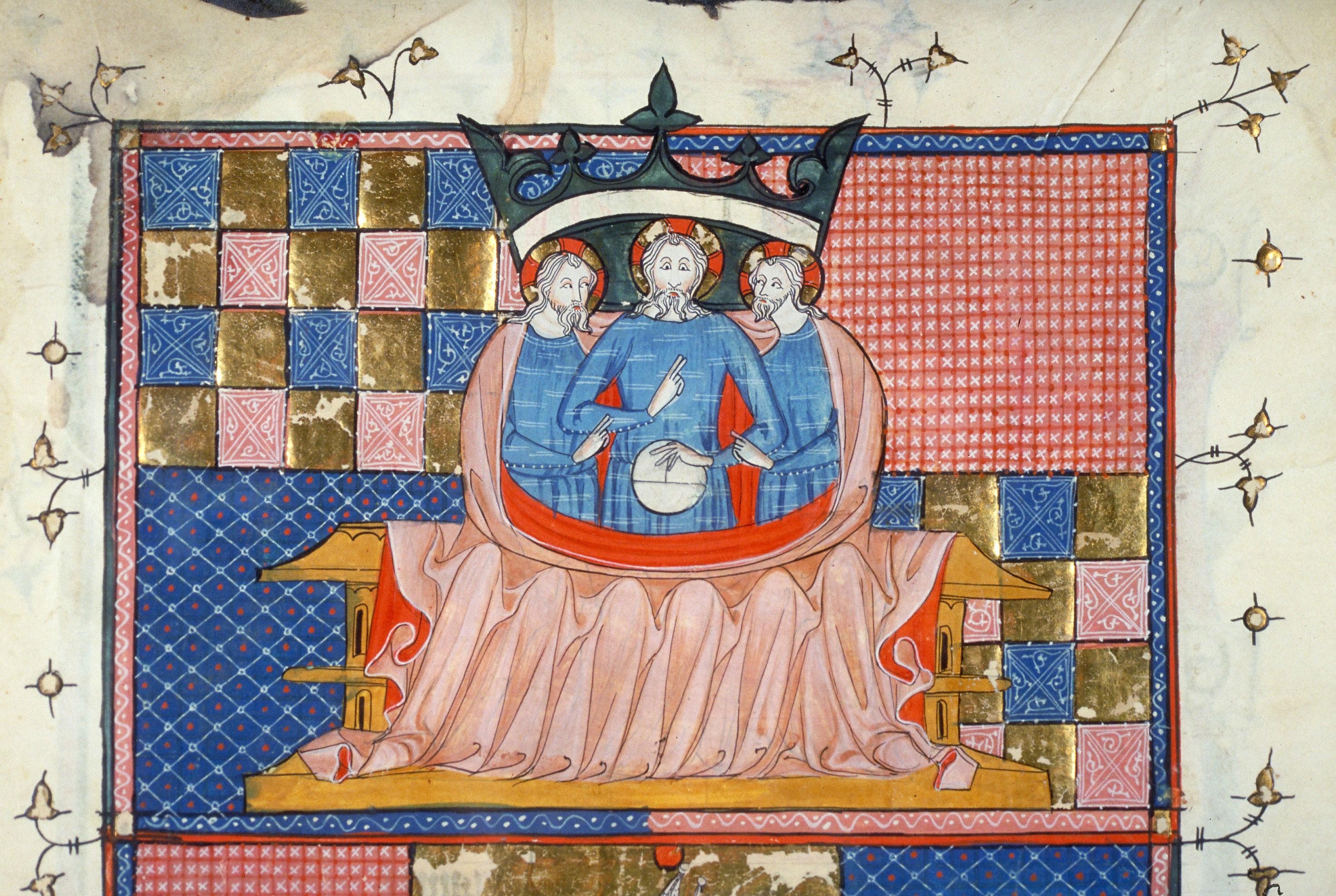Quelques jalons ou balises temporelles. Sinistre réputation du XIVe siècle (Guerre de Cent Ans, Peste Noire). La crise épargne Toulouse et sa région jusque dans les années 1340. Combien d’habitants ? 35 000 vers 1335, 22 000 environ en fin de siècle. Une grande capitale régionale (les capitouls détiennent des pouvoirs importants, même si la ville est devenue ville royale (rattachée au royaume de France en 1271), siège d’une sénéchaussée installée au château Narbonnais). L’exposition présente des portraits capitulaires (on connaît 14 portraits capitulaires allant de 1352 à 1413, avec des fonds aux motifs variés, damiers, rinceaux, quadrillage divers, juxtaposés en patchwork). Une ville divisée en sept paroisses, organisée autour de bâtiments religieux (cathédrale – l’évêché de Toulouse est élevé au rang d’archevêché en 1317 -, établissements religieux anciens, Saint-Sernin, avec la translation des reliques de l’apôtre Jacques le Majeur, en 1385, monastère Sainte-Marie-la-Daurade, couvents mendiants et branches féminines du XIIIe siècle, en 1369, translation des reliques de saint Thomas d’Aquin au couvent des Jacobins de Toulouse, l’église des Jacobins est consacrée en 1385). Une ville qui voit se développer le faubourg Saint-Cyprien sur la rive gauche de la Garonne.