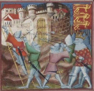La guerre de Cent Ans, les phases rappelées dans l’introduction du Dictionnaire. Marche à la guerre. Aux origines de la querelle entre Edouard III et son cousin Philippe de Valois, le premier reprochant au second de lui avoir volé la couronne de France, à la fin des années 1330. Quel objectif pour Edouard III ? La guerre de Cent Ans commence comme une « faide chevaleresque », avec des forces en présence en apparence déséquilibrées. Les premières opérations, le désastre de 1356, près de Poitiers (Jean le Bon est fait prisonnier), les traités de Brétigny et de Calais (1360). Remise des territoires du Sud-Ouest par le roi de France mais d’échange des renonciations (à la couronne de France par Edouard, à la souveraineté sur l’Aquitaine pour Jean). L’avènement de Charles V, la rupture de la paix en 1368-1369, la reconquête française, la mort d’Edouard (1377). Charles VI et Richard II (destitué en 1399 et avènement du Lancastre Henry IV, puis Henry V, à partir de 1413). La lutte entre les partis de Bourgogne et d’Orléans en France, la défaite française d’Azincourt (1415), la folie de Charles VI. Le traité de Troyes, en 1420 (par lequel Henry V devient l’héritier du royaume de France). Henri VI face à Charles VI. Jeanne d’Arc. Du traité d’Arras (1435) à la conquête de la Guyenne (1453).