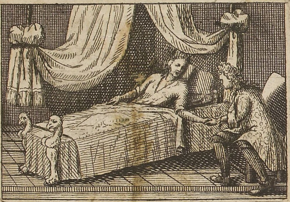 Editions originales de La Princesse de Clèves (1678) et de La Jeune Amériquaine et les contes marins, par Madame de ***, où est publiée l’histoire de la Belle et de la Bête (par Gabrielle-Suzanne de Villeneuve, 1740). Au centre, gravure illustrant la Belle au bois dormant, dans Histoires ou contes du temps passé. Avec des moralitez, par Charles Perrault (1697)