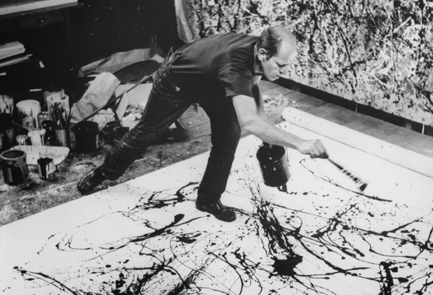Jackson Pollock et Jean Dubuffet dans leurs ateliers au début des années 1950